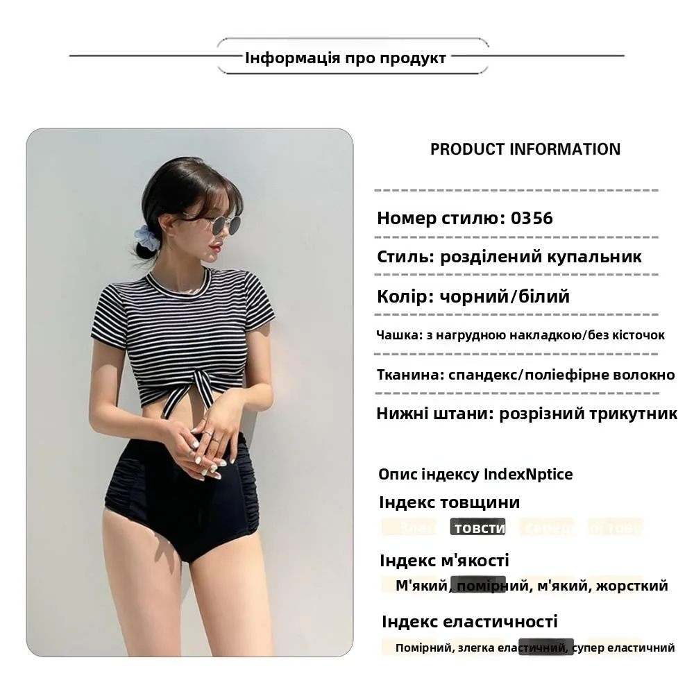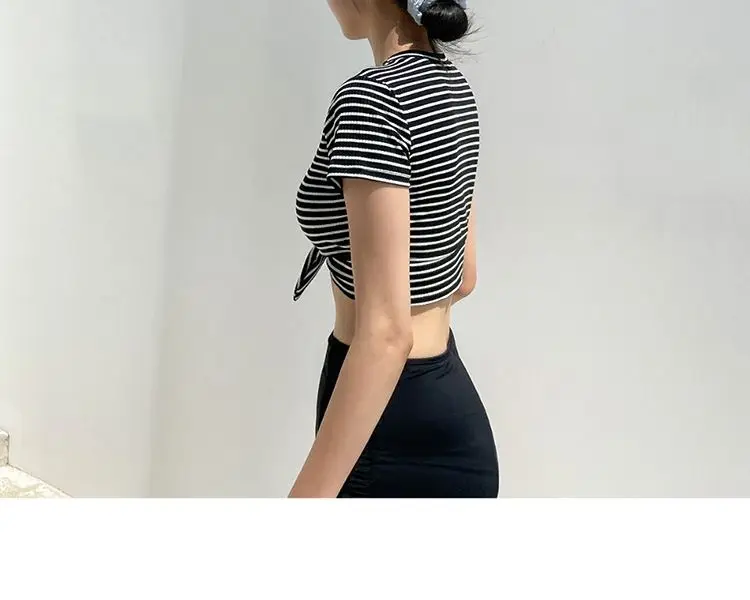 High Waist Stripe Sports Swimsuit Women's Bikini Top with Strap Conservative Belly Covering Slimming ort Sve Swimwear