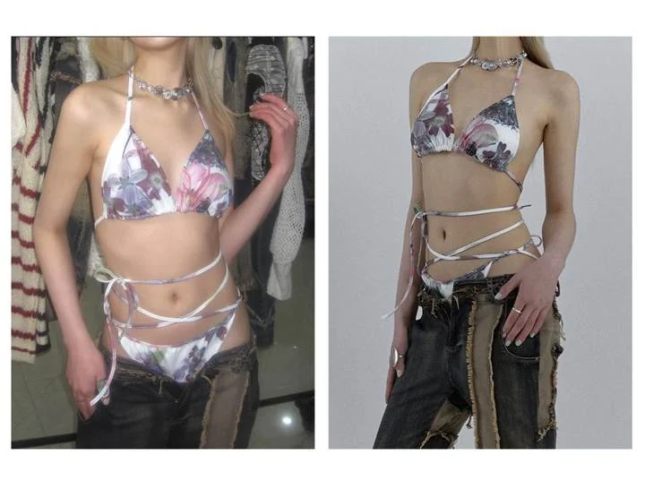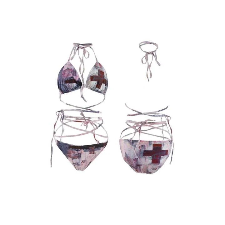 Japanese Subculture Y2K Harajuku Pattern Printed Women's Bikini Set Summer American Retro Sexy Strap Millennium Style Bikini emo