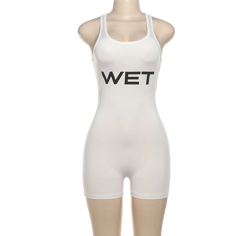 New 2025 Summer Women Sexy Sport Romper Subtranslucent Slim Playsuits Letter Printed White Women'S Raceback Sleeveless