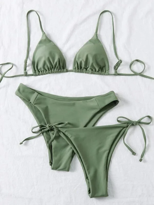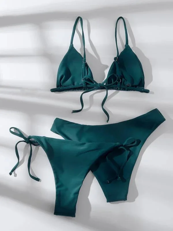 OIINAA Swimwear Women Sexy Solid Swimsuit Drawstring Bow Tie Bikini Set Three-pieces Beachwear Summer Thong Bather Bathing Suit