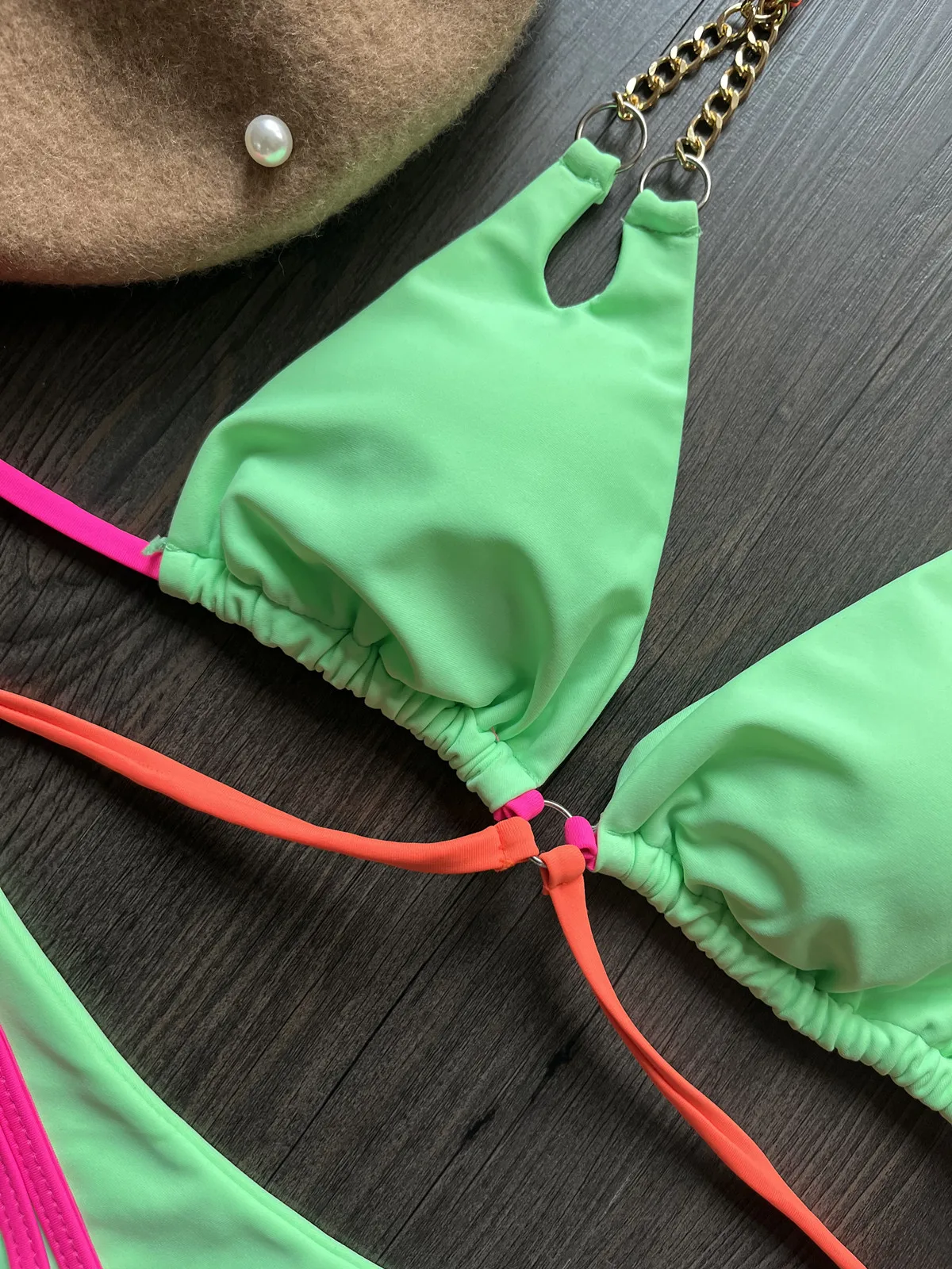 Para Praia Sexy Multicolor Push Up Swimwear Women Brazilian Bikini 2023 Swimsuit Halter Biquini Holiday Two Pieces Bathing Suit