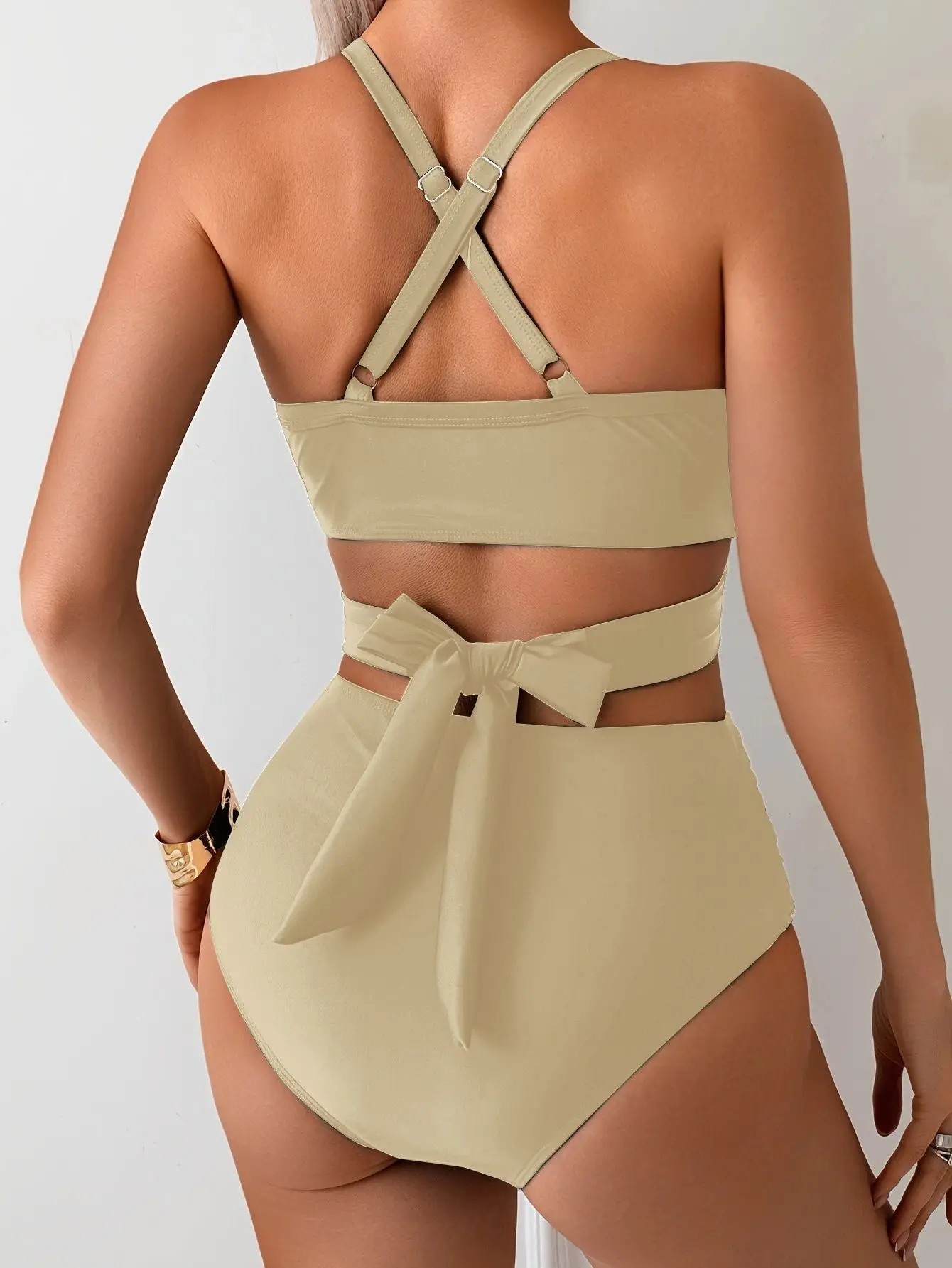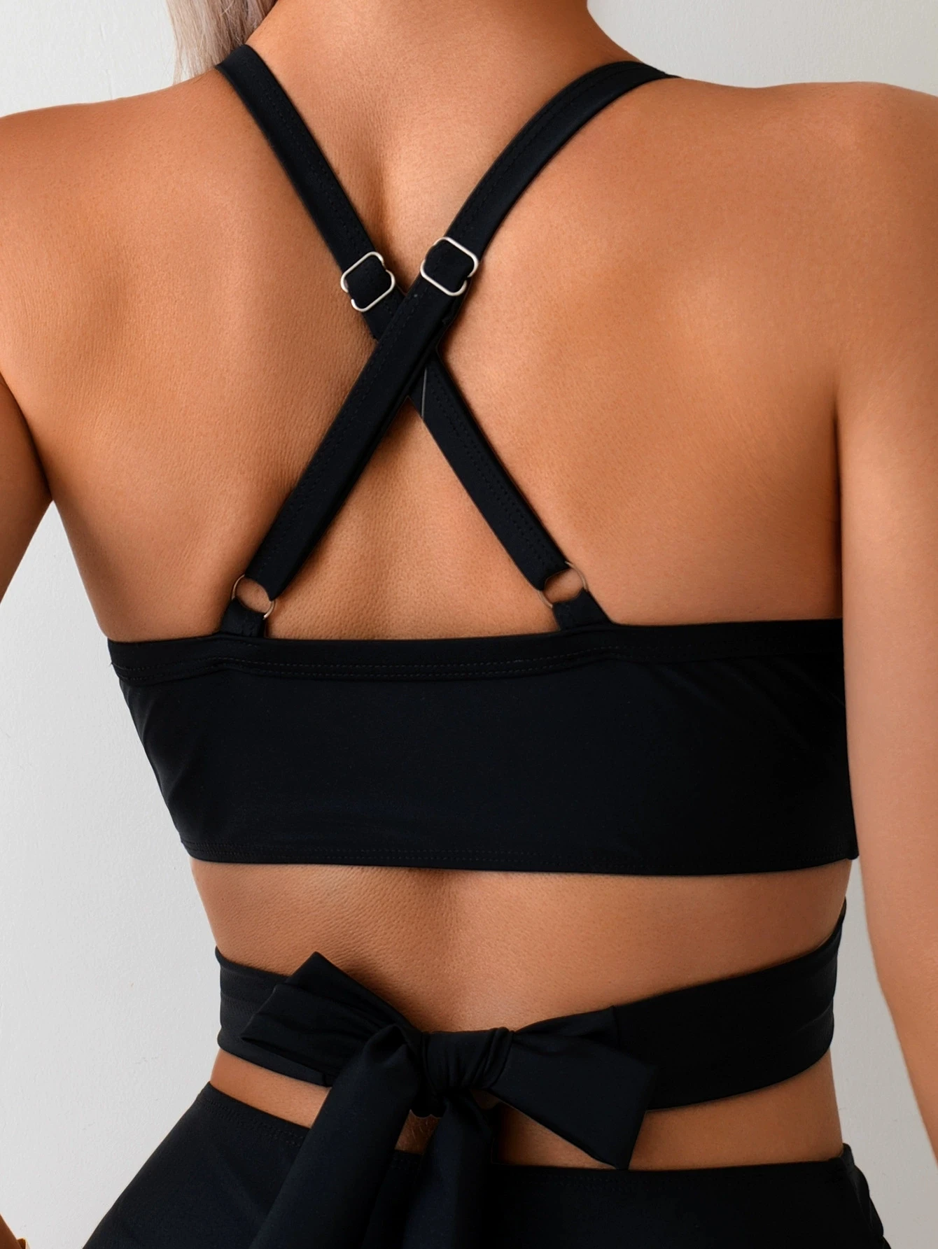 Sexy black mesh patchwork bikini set 2025 women hanging neck bandage cross high waist swimsuit beach bathing suit swimwear