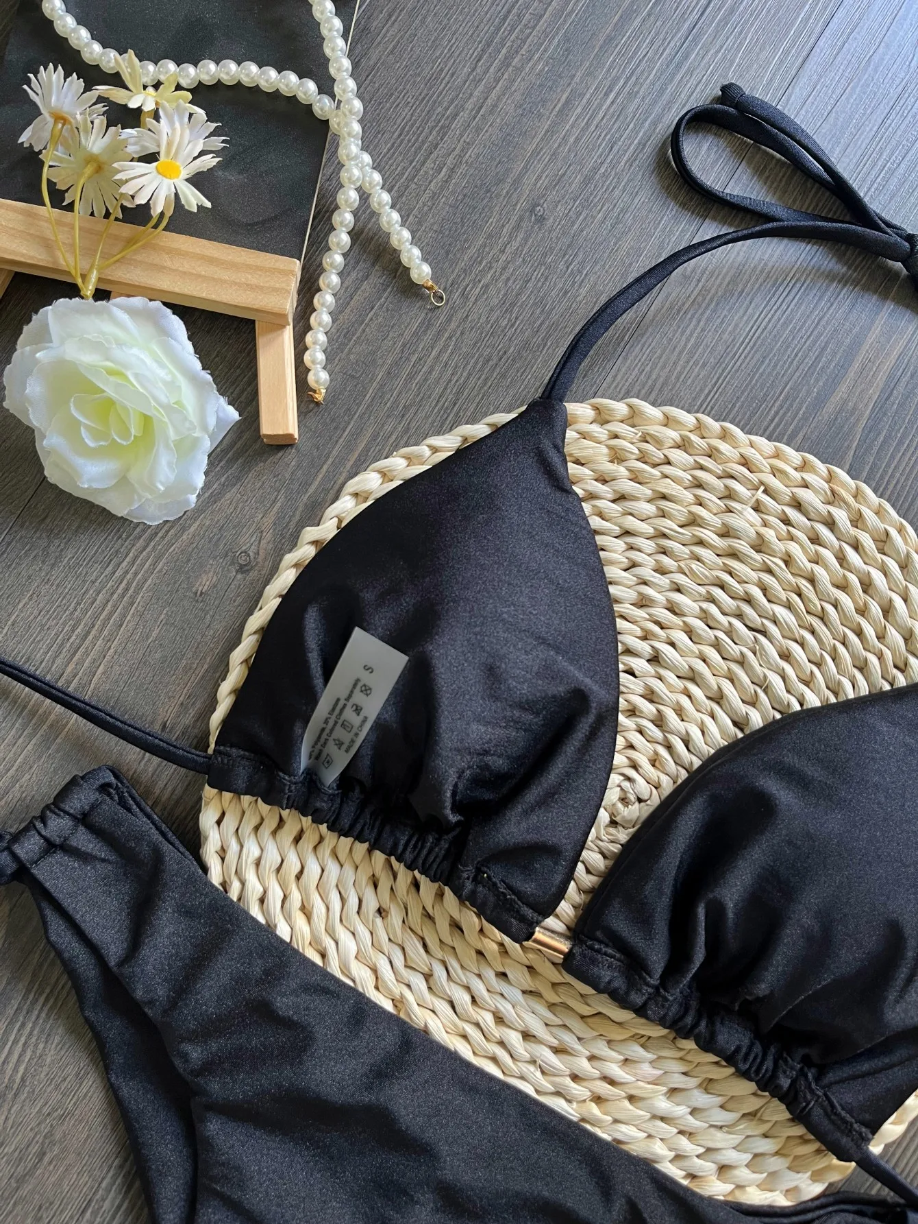Sexy Halter Bandage Bikini Set Drawstring Beeds Patchwork Women Swimsuit Two-piece Triangle Thong Swimwear Bathing Suit Biquini