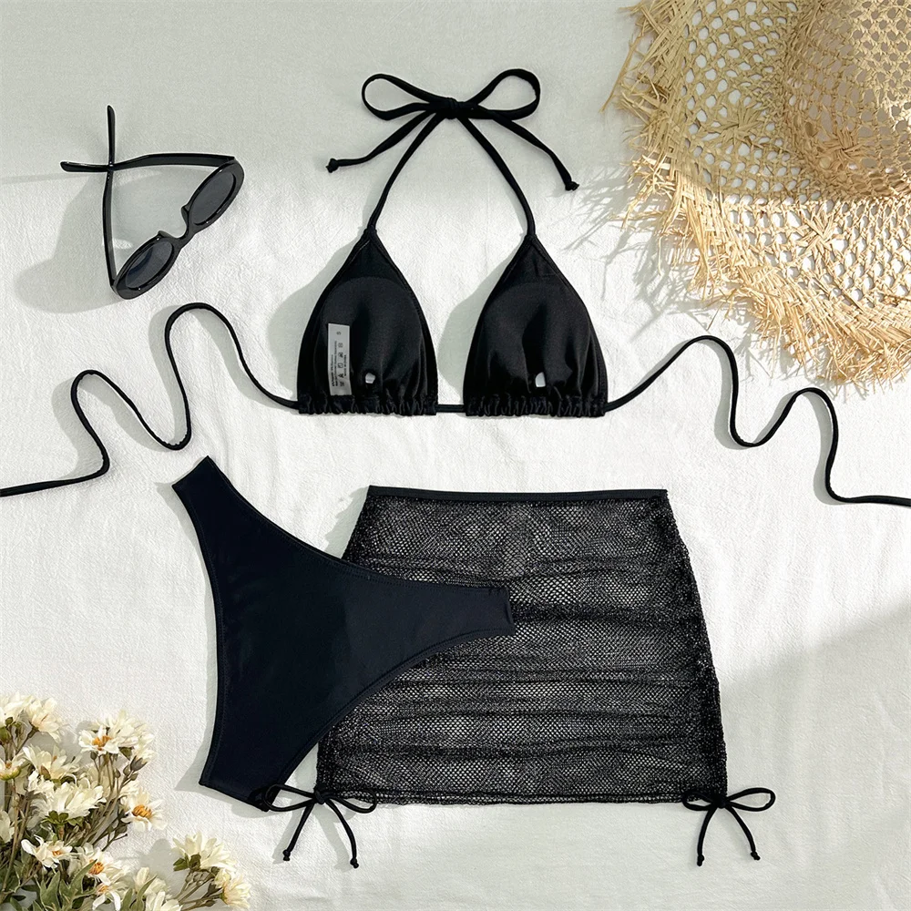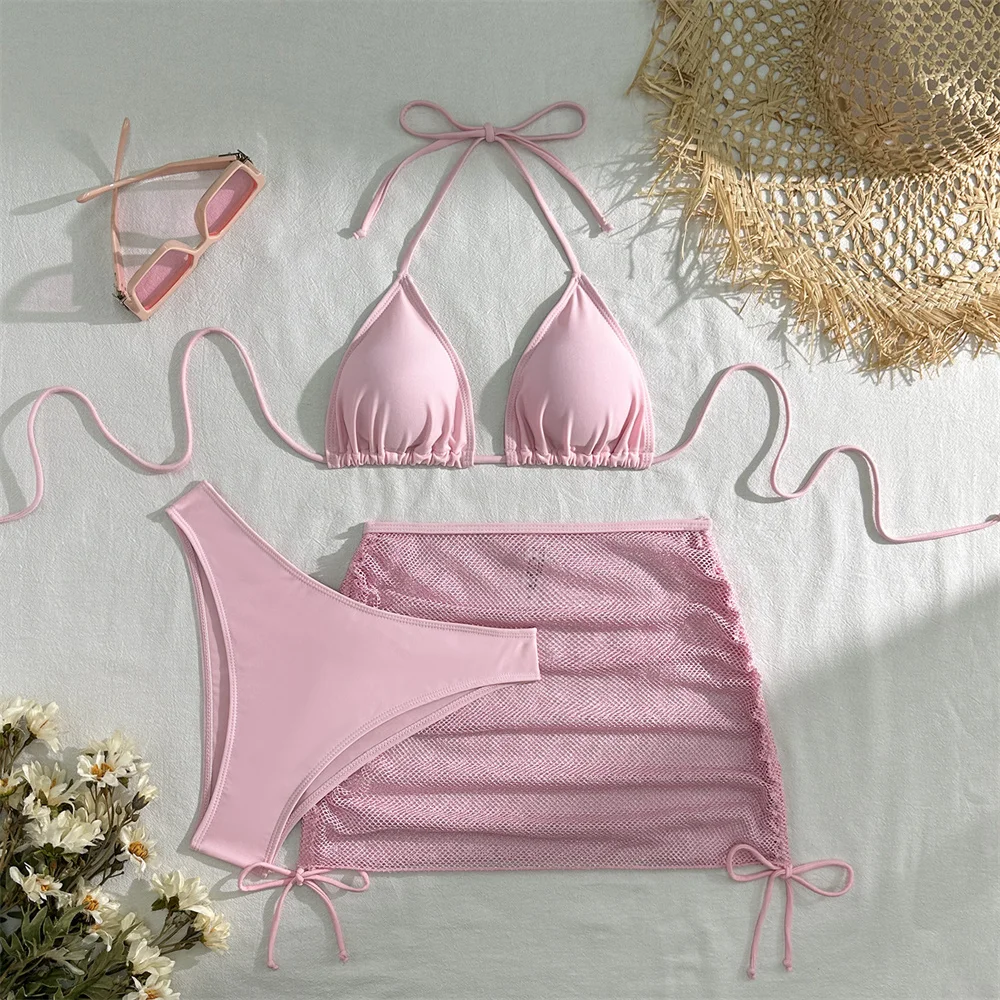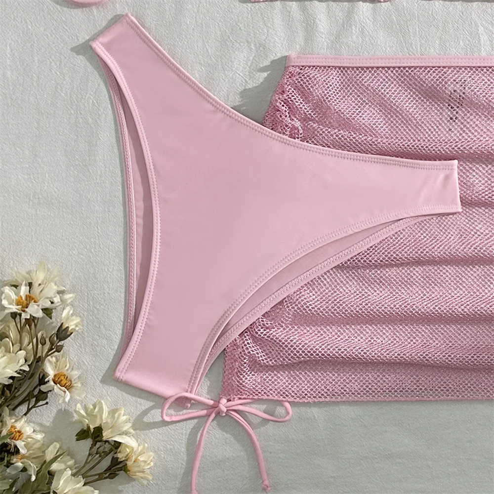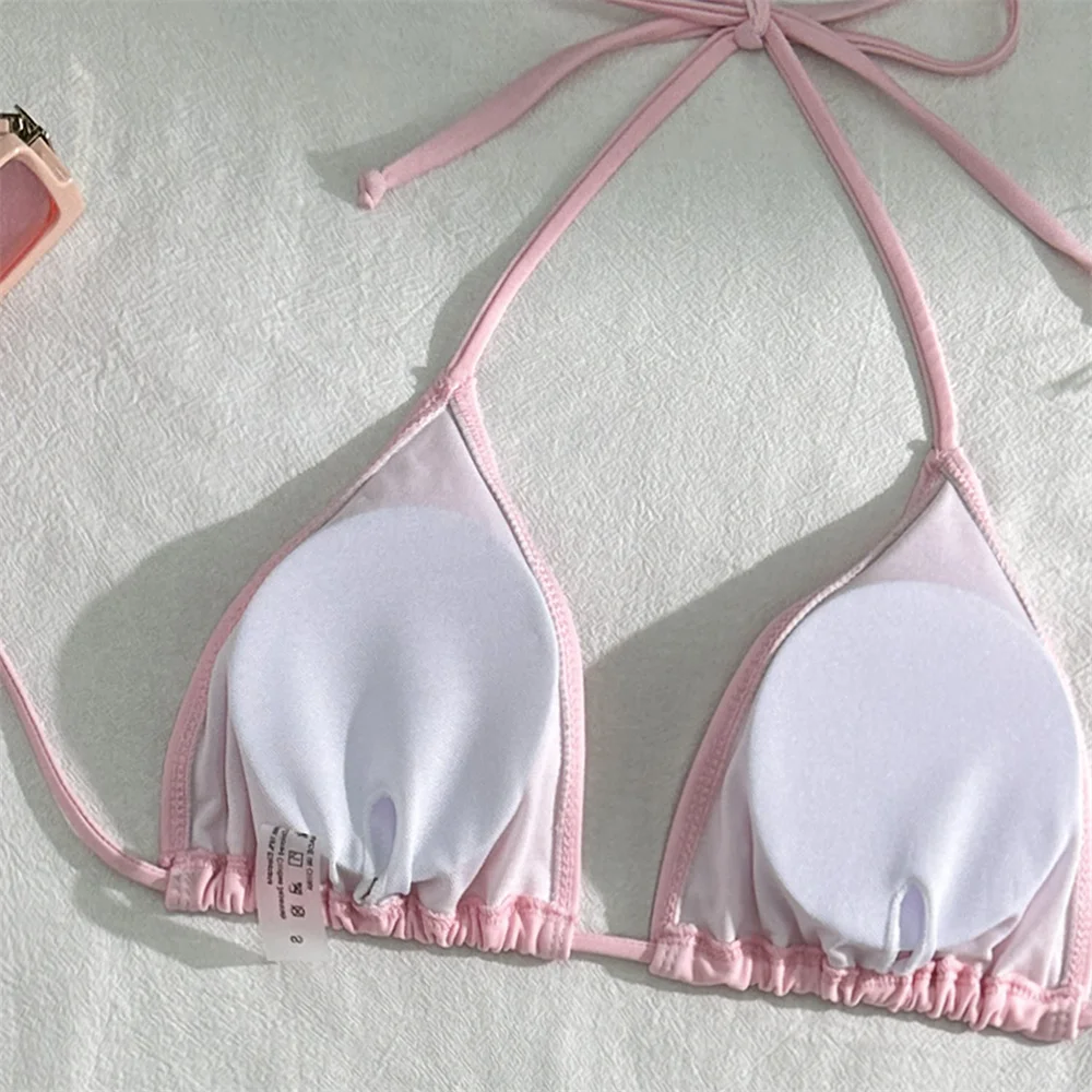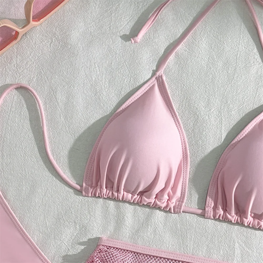 Sexy Pink Bikini Extrem String Backless Swimwear Mesh Skirt Women Push Up Swimsuit Black Y2K Thong Bikinis Beach Vacation Outfit