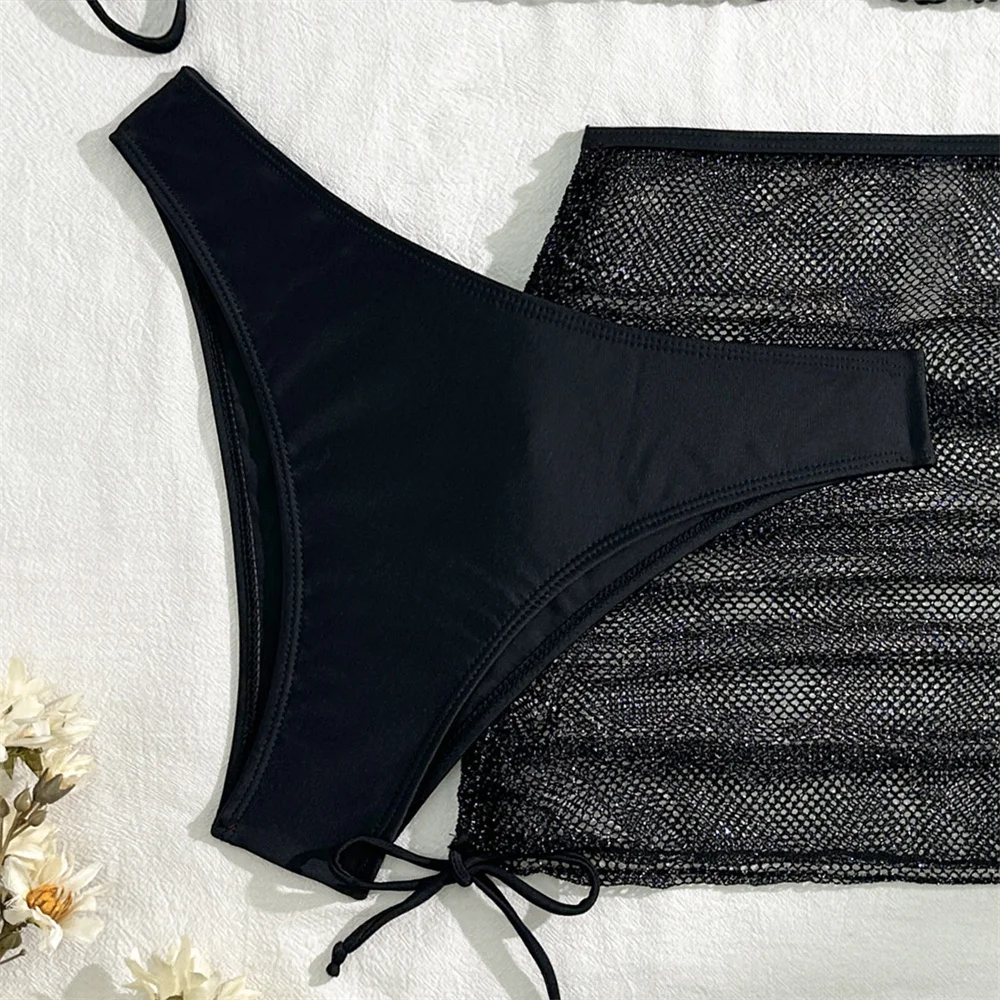 Sexy Pink Bikini Extrem String Backless Swimwear Tinsel Mesh Skirt Women Push Up Swimsuit Goth Holes Black Y2K Thong Bikinis Beach Vacation Outfit Shiny Cover Ups maillot de bain