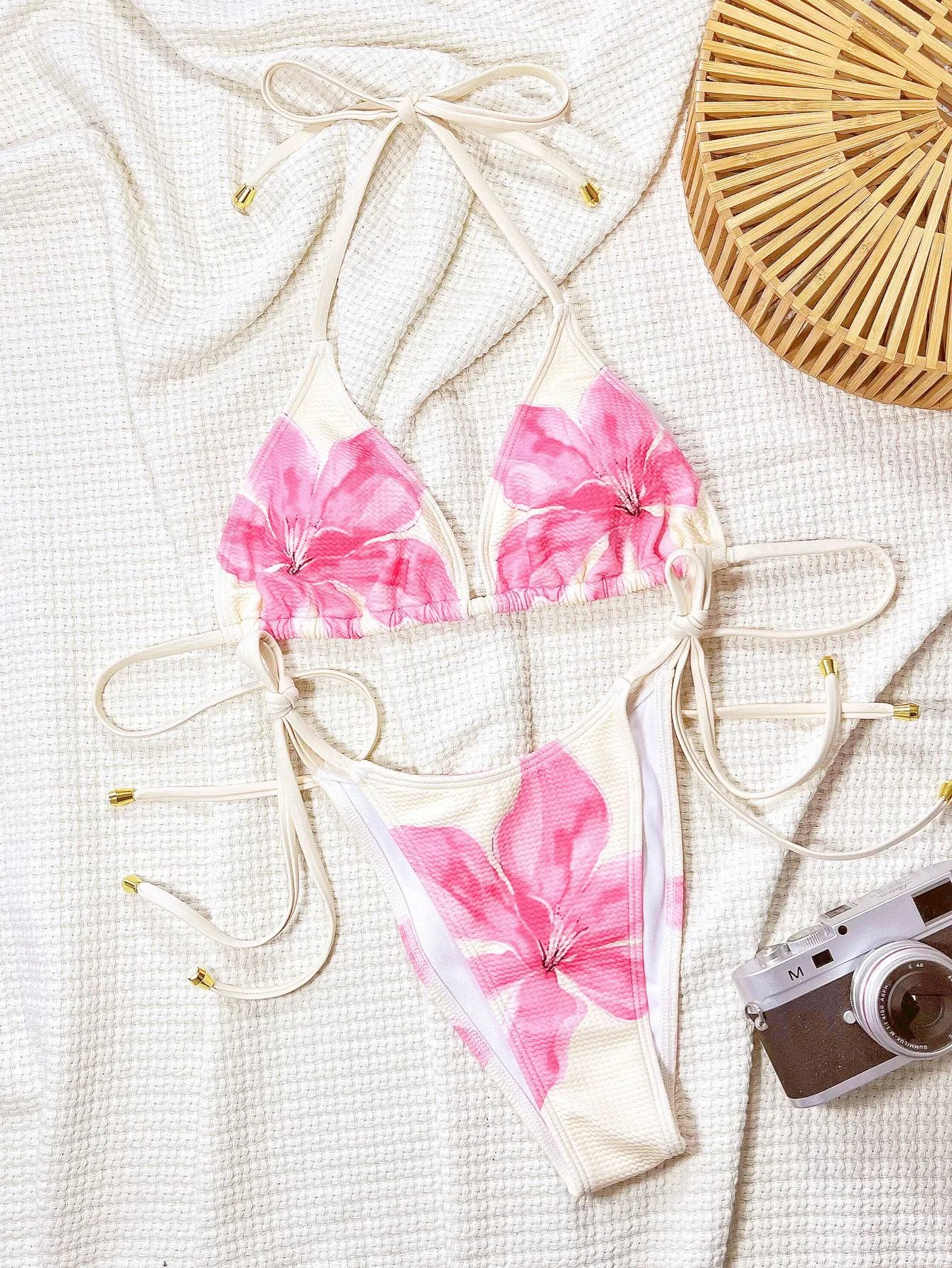 Sexy Pink Floral Print Bikini Set Women Summer Push Up Micro Swimsuit 2025 Brazilian Beach Bathing Suit Thong Swimwear Biquini