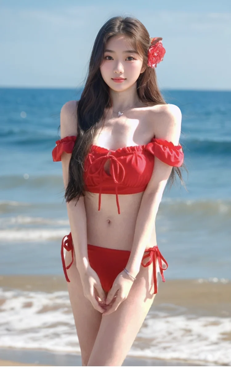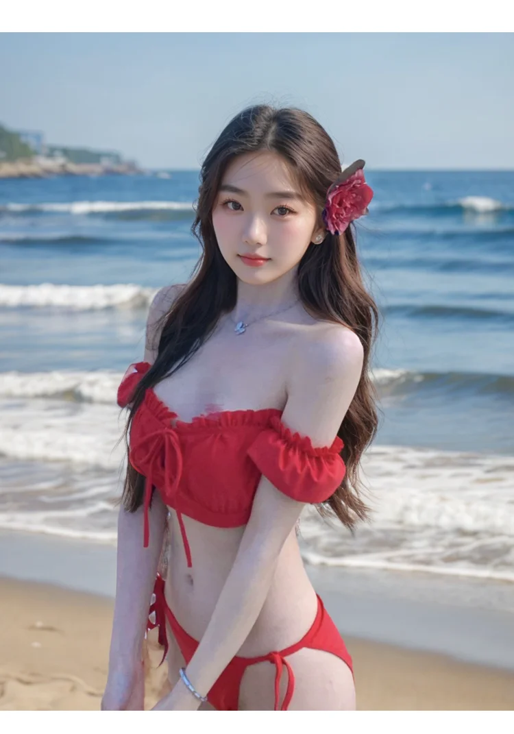 Sexy Retro Red Bikini Women's Two-Piece Swimsuit Pure Desire Swimwear 2025 New Sle Trendy e Design with Steel Support