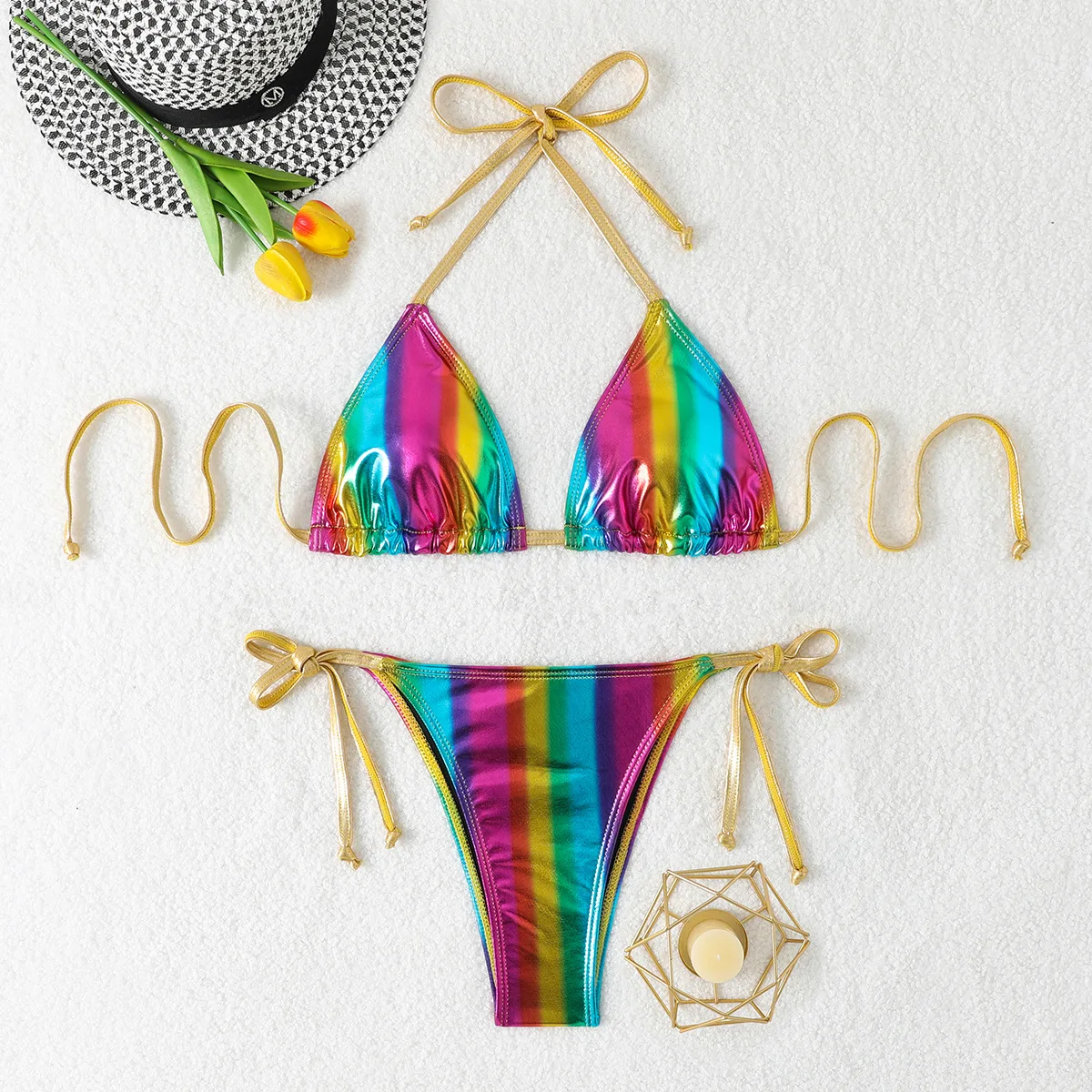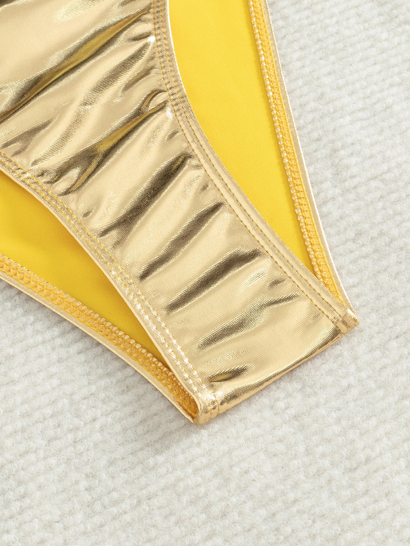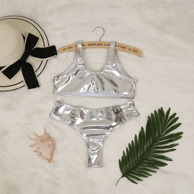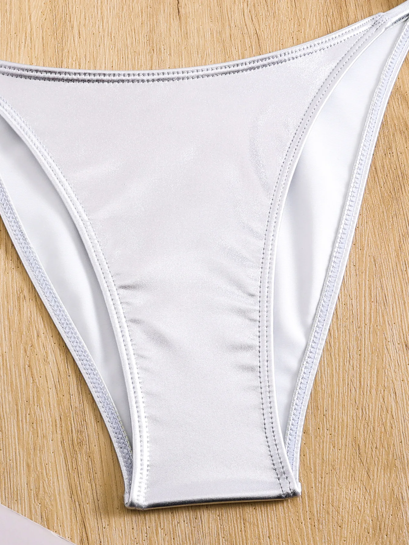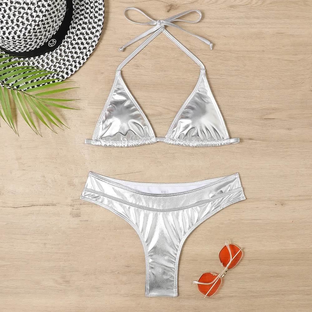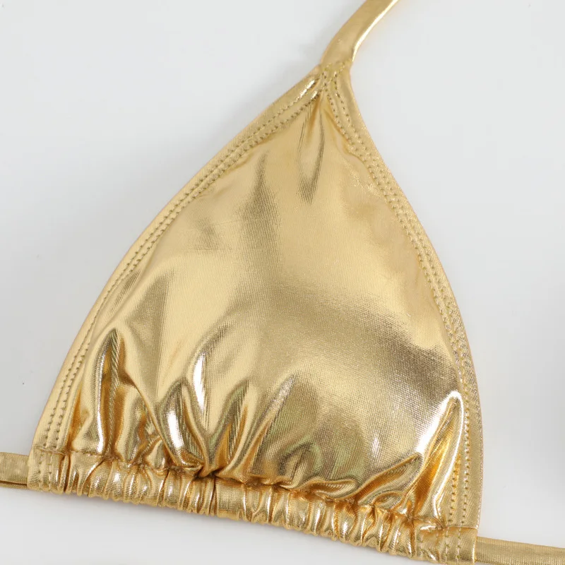 Sexy Triangle Push Up Bikini Metallic Brazilian Swimwear Women Golden Silver Side String Bikini Bathing Suit Beach Wear Biquini