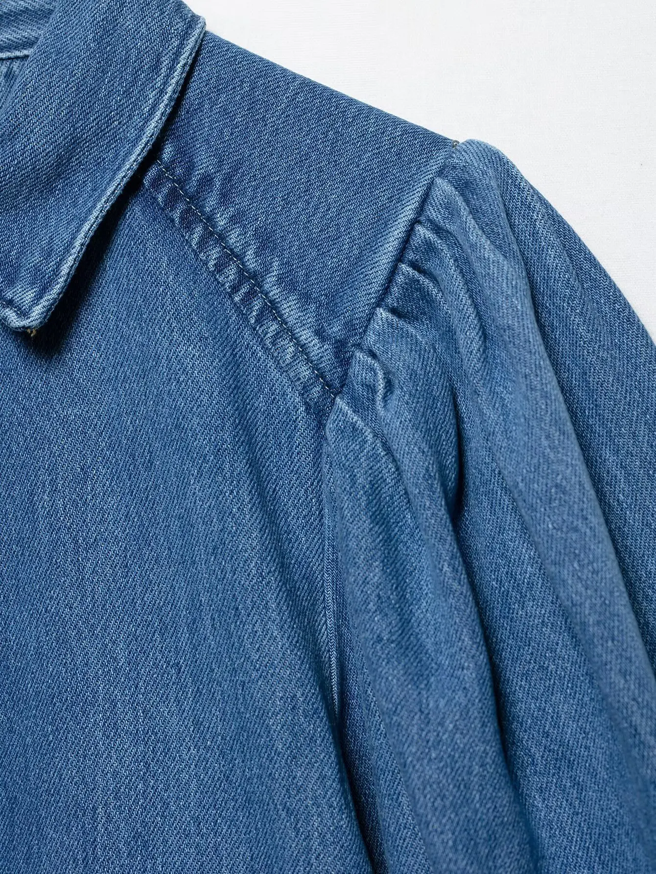 TFAFXY 2025 Spring Summer Casual Women's Denim Blouse Collar Single Breasted Loose Blouse New Fashion Shirts